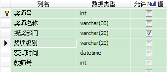 (6)獎(jiǎng)項(xiàng)表設(shè)計(jì)如下: